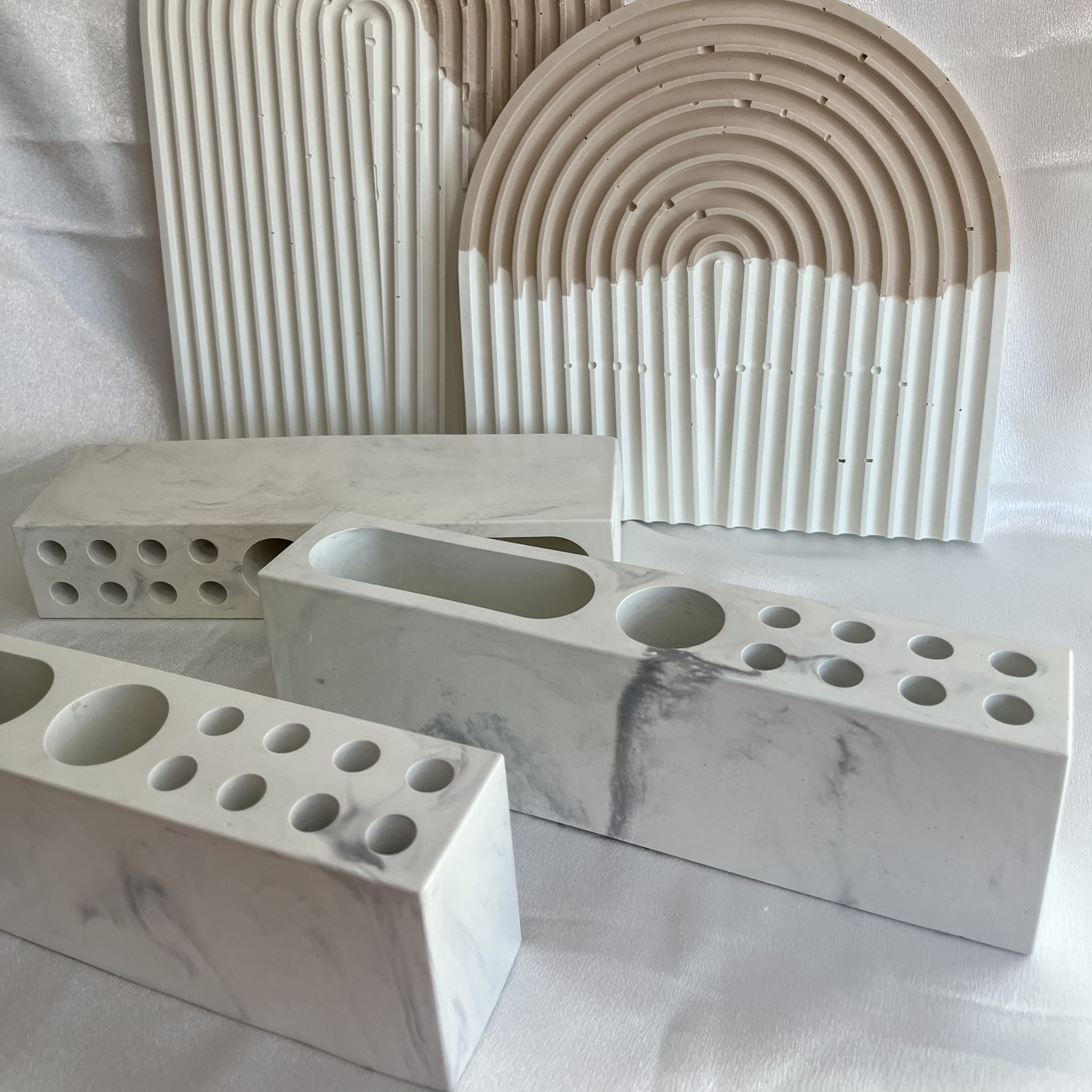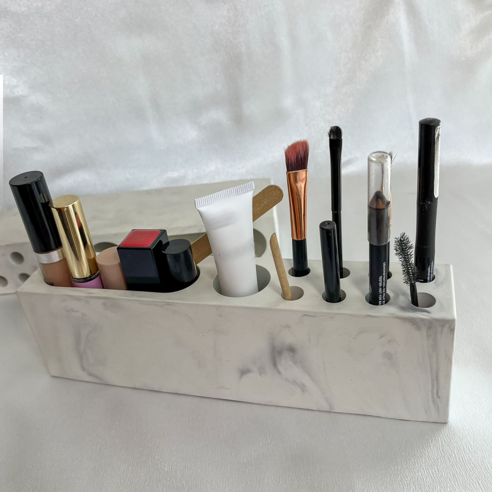 Organisateur de Bureau ou Maquillage en Ciment Blanc Marbré.